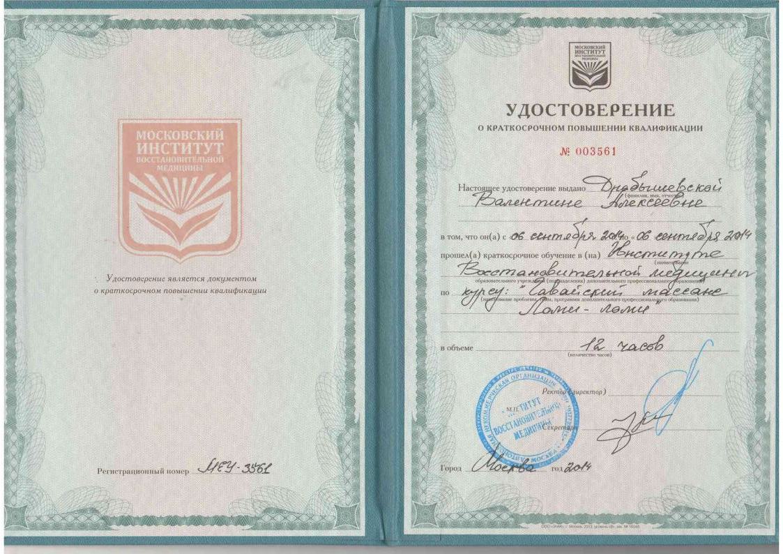 Прейскурант цен на массаж